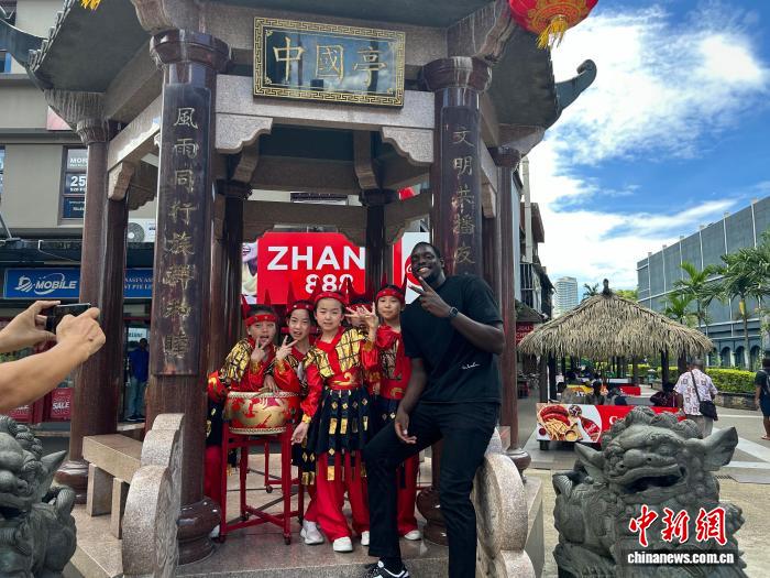鼓手们在苏瓦中国亭完成非遗鼓乐快闪表演。张新 摄