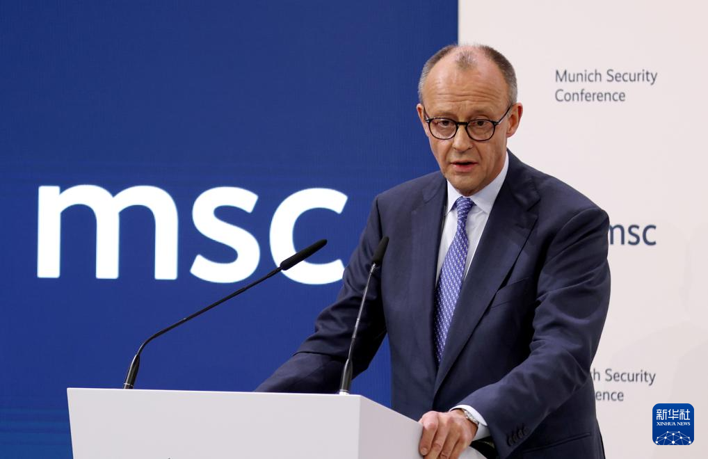 2月13日,在德国慕尼黑,德国总理默茨在第62届慕尼黑安全会议(慕安会)开幕式上致辞。新华社记者 李颖 摄