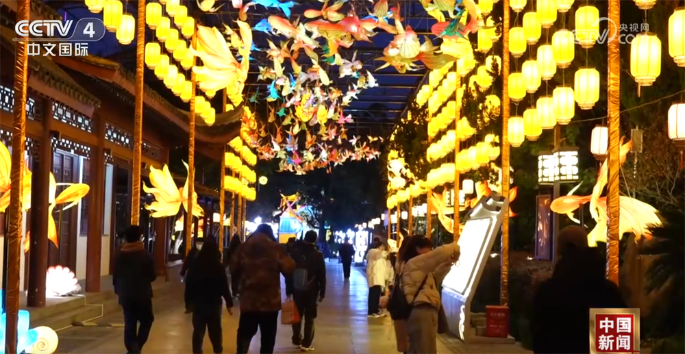 央视网消息:春节临近,在江苏南京,多组特色大型灯彩吸引了各地游客前来游玩、观赏。