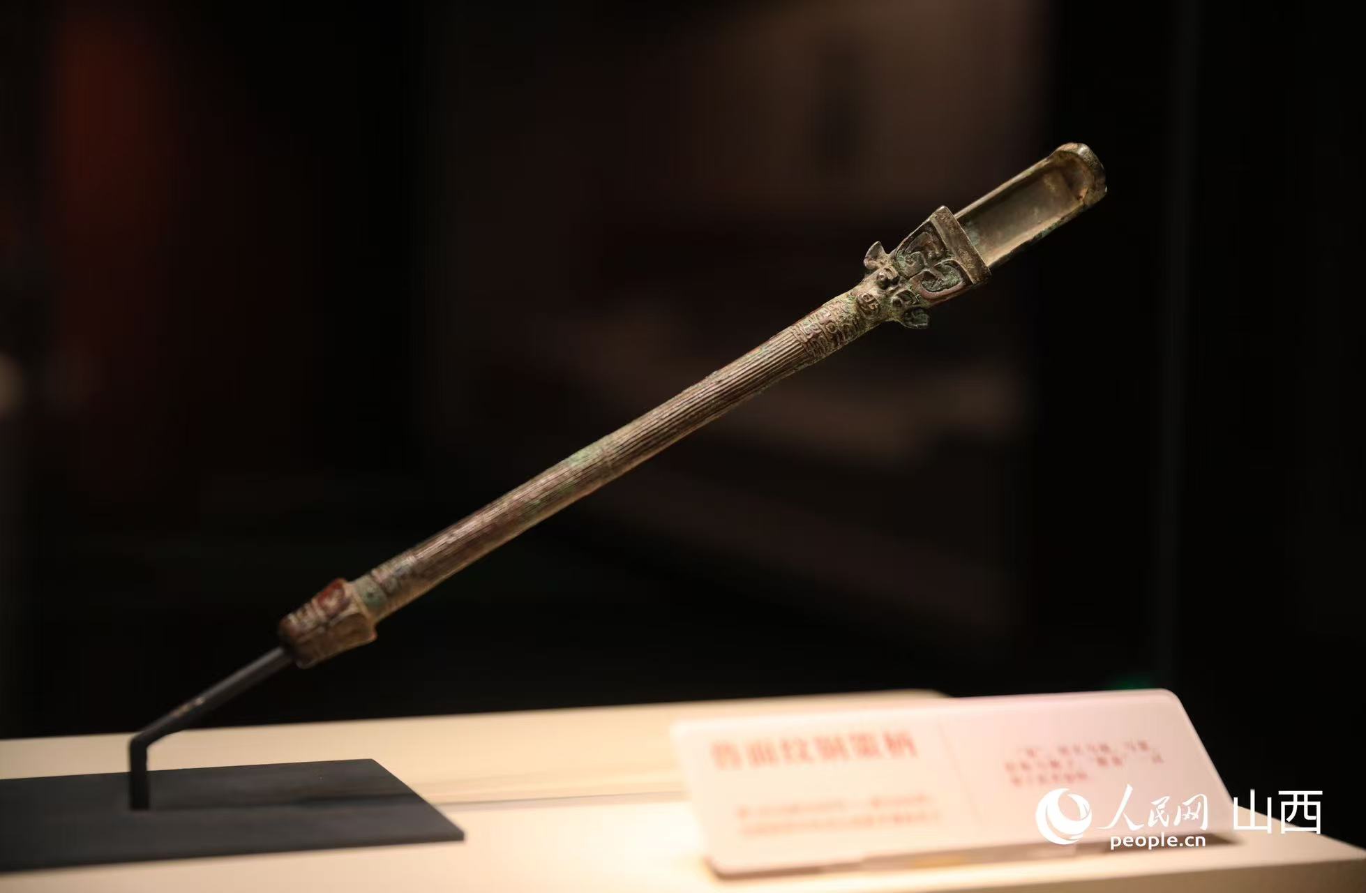古代马具——兽面纹策柄。人民网记者王帆摄