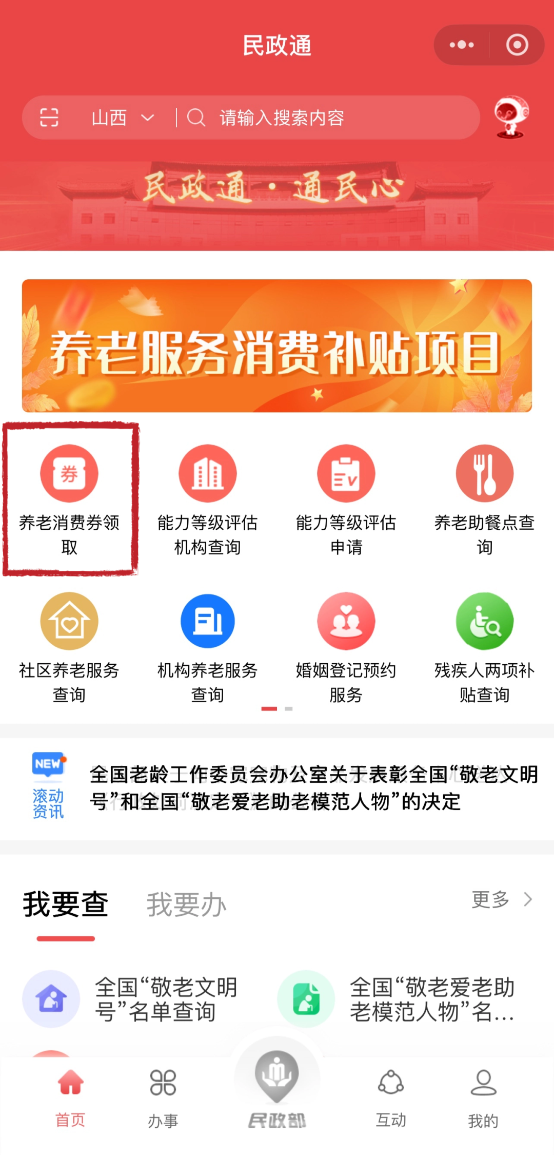 02 找到养老消费券领取入口