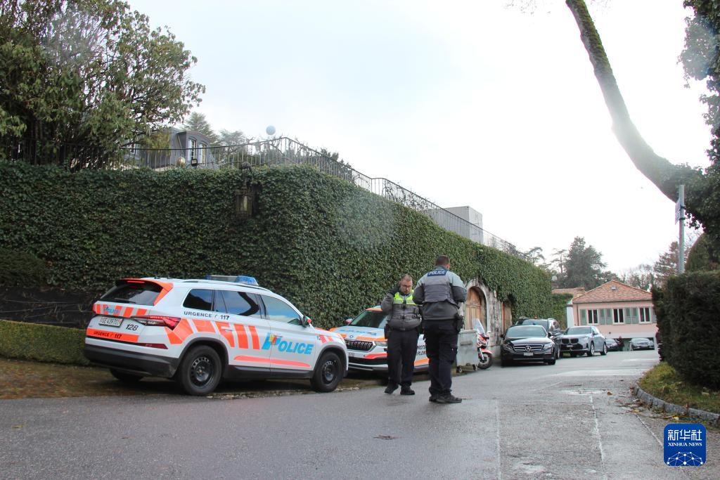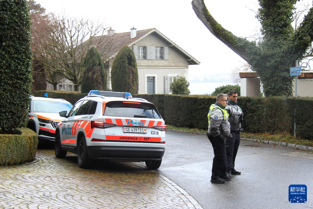 2月17日,在瑞士日内瓦,警察在阿曼驻日内瓦外交代表机构附近警戒。新华社记者 石松 摄