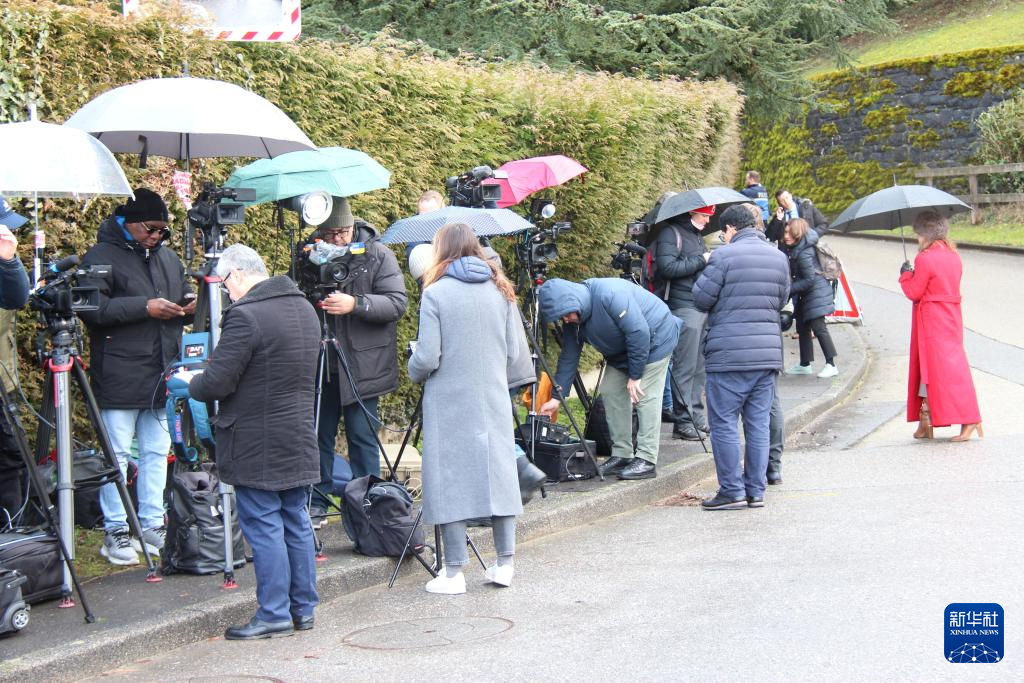 2月17日,在瑞士日内瓦,记者在阿曼驻日内瓦外交代表机构附近等待。新华社记者 石松 摄