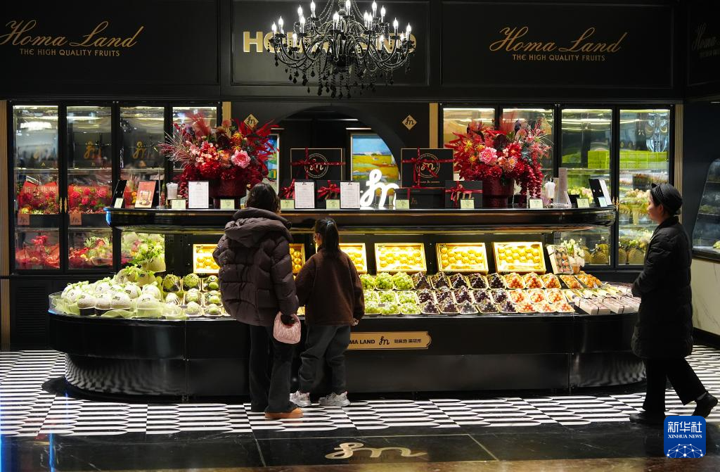 2月17日,游客在西安万象城一家水果店内选购。新华社记者 邵瑞 摄