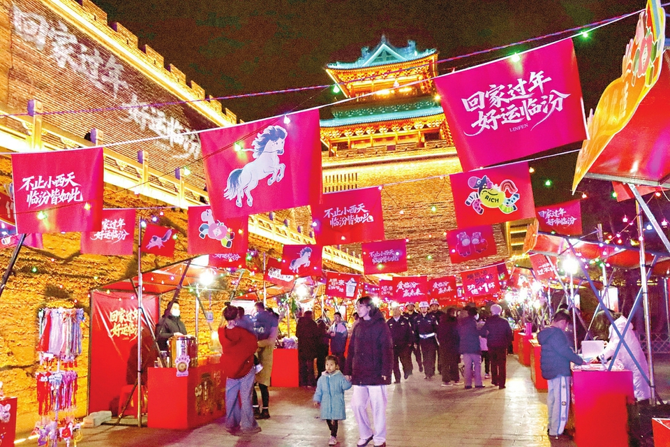 2月14日,临汾古城墙下“小年夜回家过年·好‘市’临汾”活动现场,一排红帐篷从南到北,打卡点前排着队,平阳老字号前人头攒动,年味品鉴区里香气勾人。市民游客走走停停,尝一口、摸一摸、聊几句,最后总要拎走一两样,把热气腾腾的年味带回家。