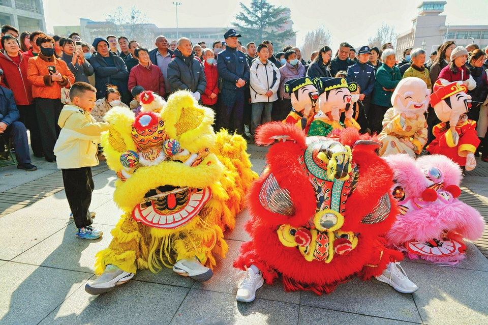 2月18日,运城市绛县电影院广场,南樊镇民俗表演队的演出精彩纷呈,赢得阵阵掌声。