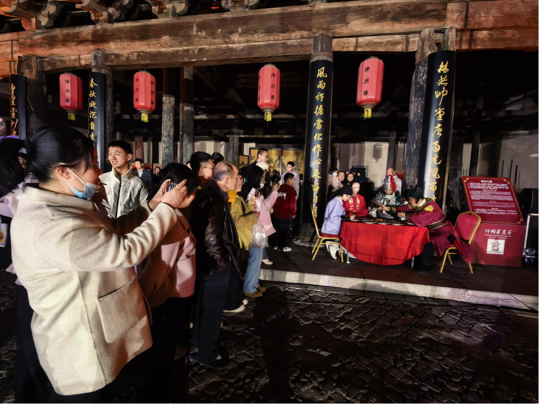 不远处,城隍庙景区内,《钟鼓和鸣 国泰民安》祈福大典正在进行。随后,一盏盏承载着心愿的孔明灯陆续升空,灯火点点与天上繁星交相辉映,将古城的夜空装点得如梦如幻。绛州署东院内,中国首部鼓乐音乐剧《鼠国奇缘》紧接着上演,以鼓为媒的奇幻故事,让古老的非遗技艺在年轻观众中圈粉无数。