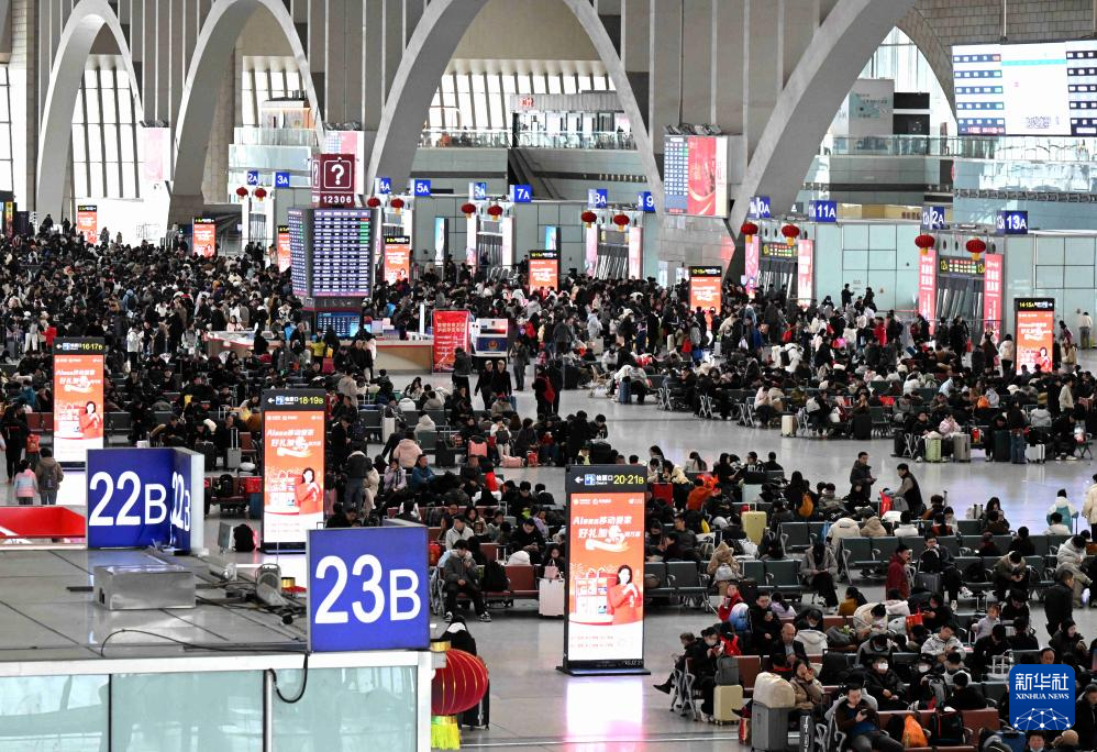 2月23日,旅客在河北石家庄火车站候车大厅候车。