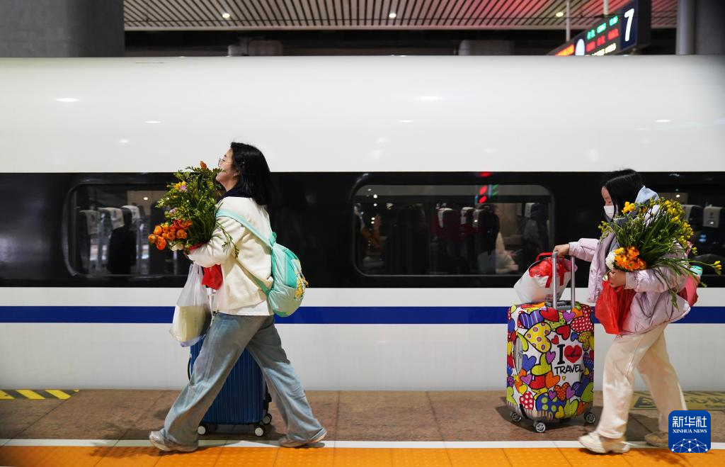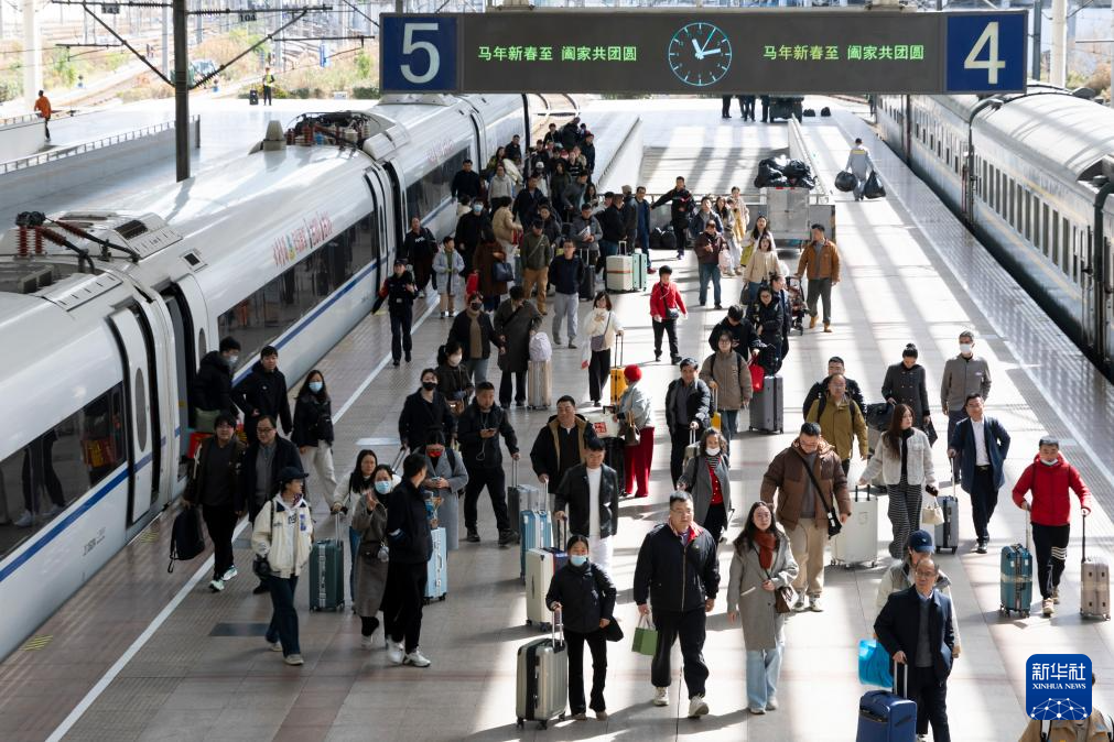 2月23日,旅客在云南昆明南站准备乘车。