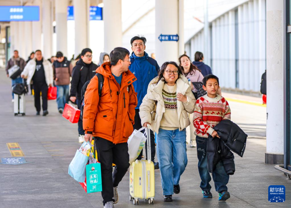 2月23日,旅客从天津西站南出站通道出站。