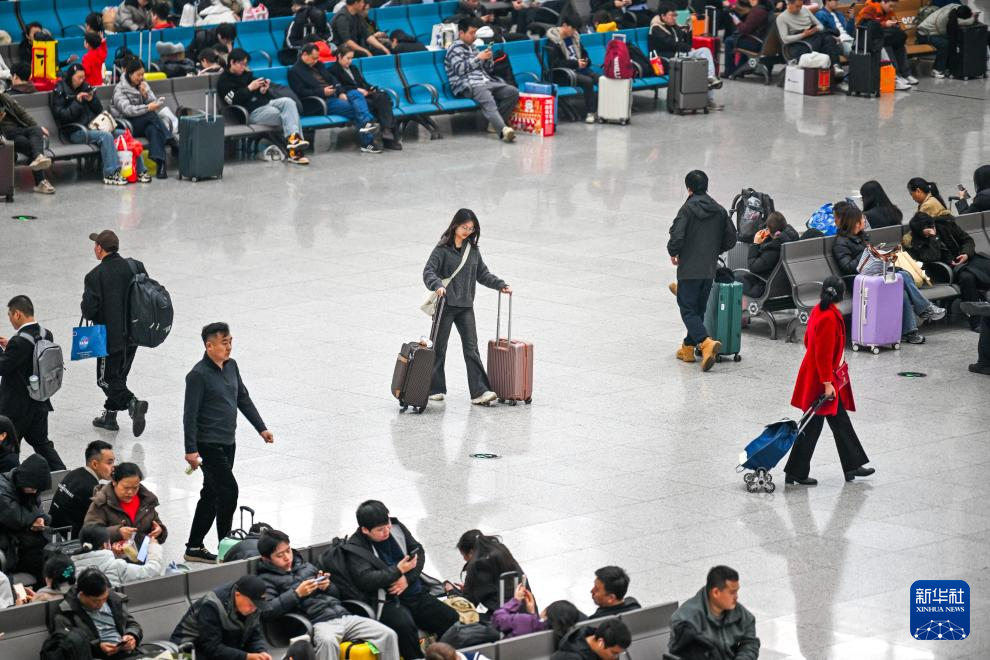 2月23日,旅客在重庆北站候车大厅等待乘车。