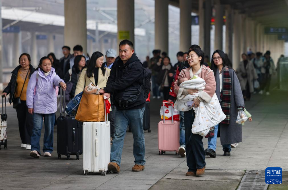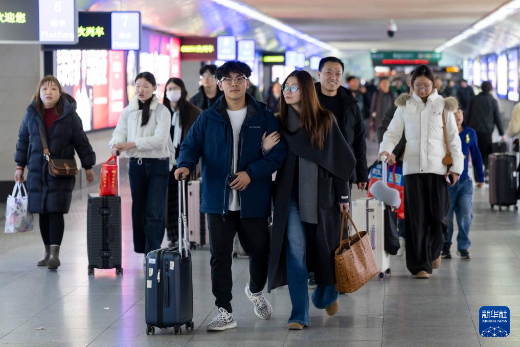 2月23日,旅客在湖北省武汉站准备乘车出行。
