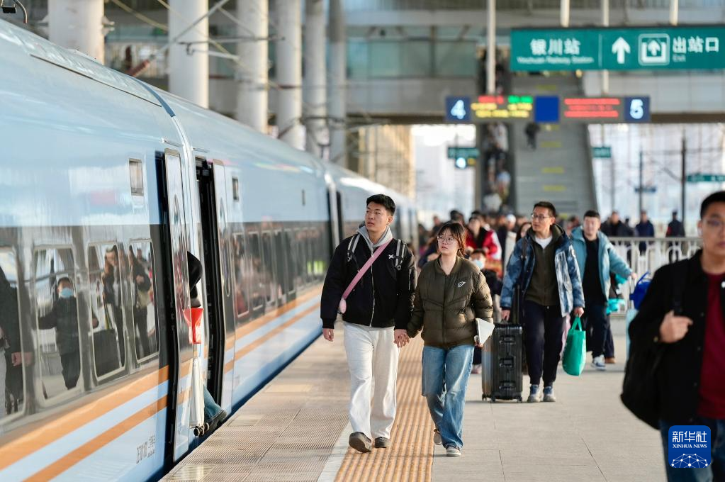 2月23日,旅客在银川火车站准备乘车。