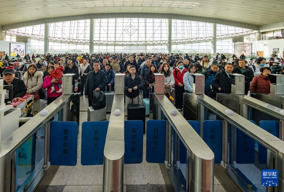 2月23日,旅客在铁路浙江嘉兴南站检票乘车。