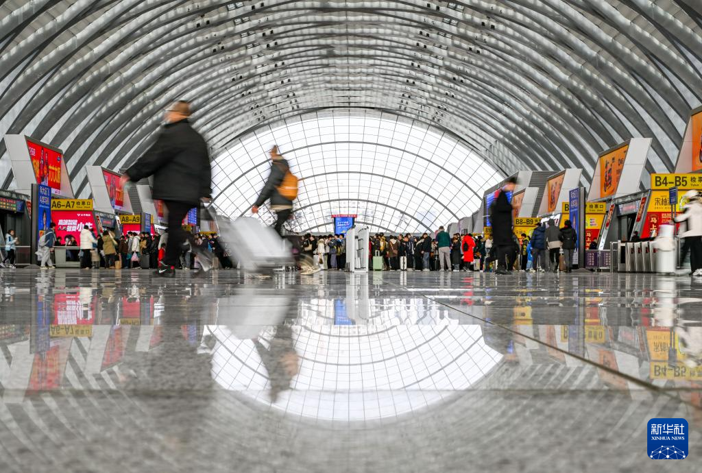 2月23日,旅客行走在重庆北站候车大厅。