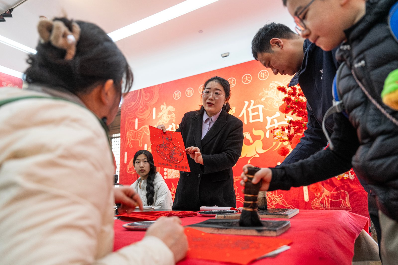 除展览外,主馆围绕“晋魂”推出4场沉浸式讲解剧,讲解员化身历史人物,带领观众身临其“晋”。“当伯乐”动手体验活动人气火爆,观众纷纷通过绘画、手工、集章等方式对马文物进行“二创”。山西青铜博物馆展览导赏、传统非遗工艺体验活动相继开展,特别是正月初二的新春音乐会将节日氛围拉满。