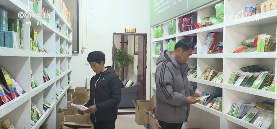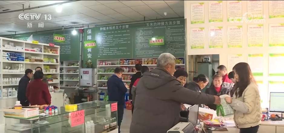 在重庆开州区供销农资交易配送中心,货架上各类种子、化肥分门别类摆放有序,不少农户和经销商前来采购。