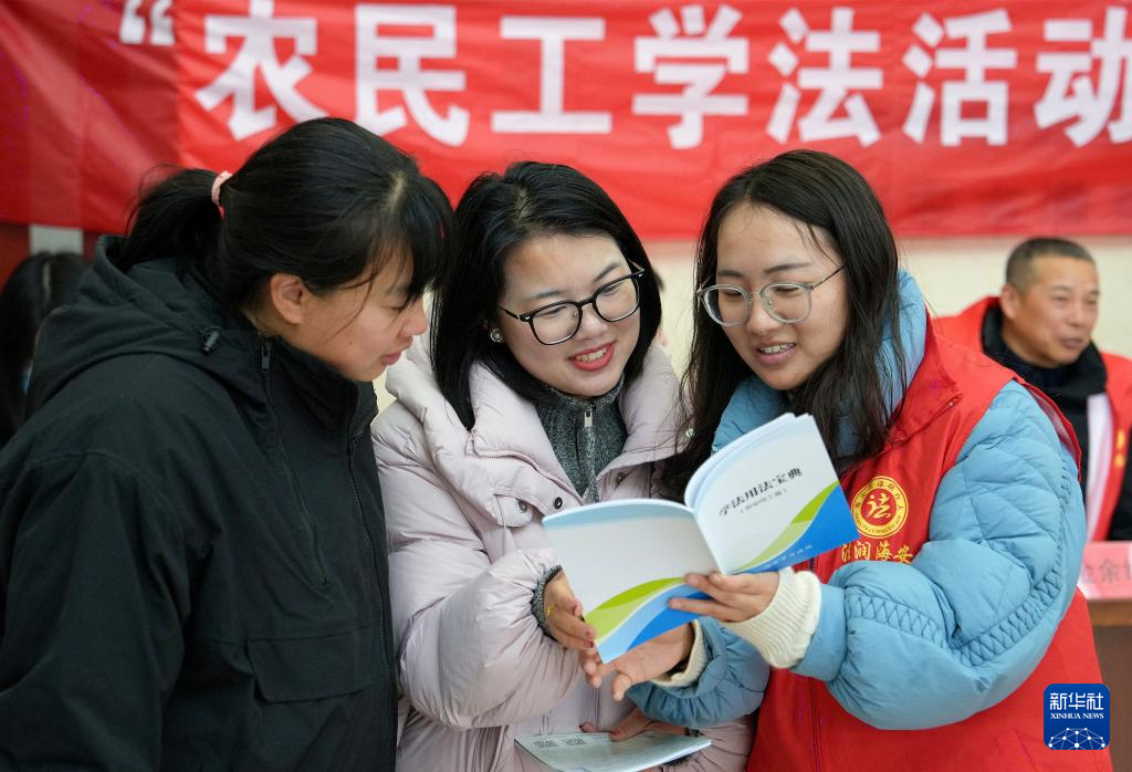 2月26日,志愿者在江苏省海安市墩头镇招聘活动现场向求职者宣传劳动用工相关法律法规。