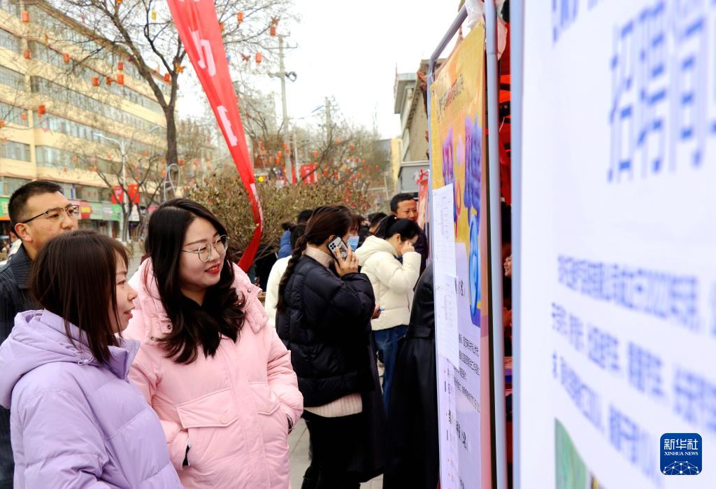 2月26日,求职者在甘肃省平凉市静宁县2026年“春风行动”县内重点企业用工保障暨东西部劳务协作专项招聘活动现场了解招聘信息。