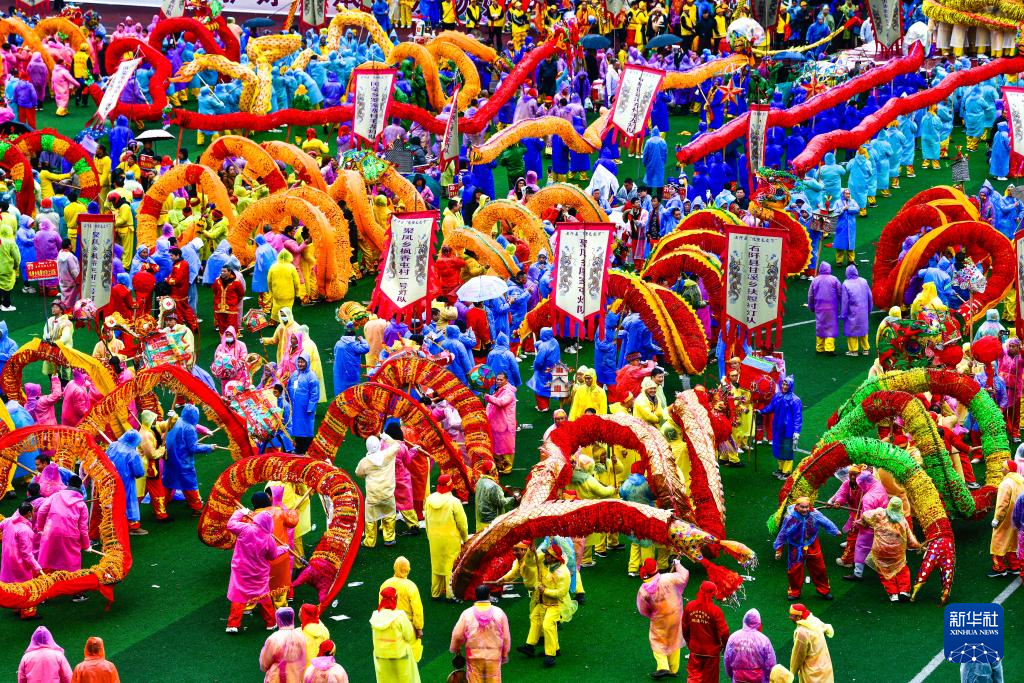这是2月27日拍摄的贵州省石阡县仡佬毛龙节开幕式现场(无人机照片)。