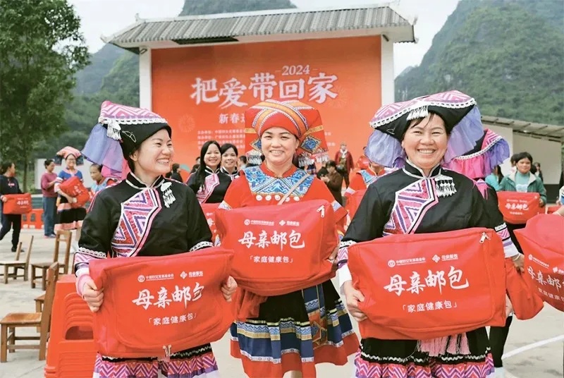 慈善事业是中国特色社会主义事业的重要组成部分,对促进社会公平正义、推动实现共同富裕具有重要意义。图为2023年12月15日,中国妇女发展基金会“母亲邮包”新春送关爱公益行活动走进广西壮族自治区南宁市马山县,为当地妇女及家庭送上“母亲邮包”,传递社会温暖与关爱。 中国慈善联合会供图
