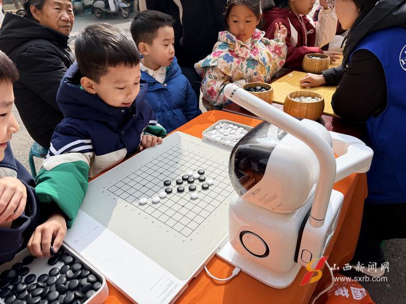 与此同时,趣味围棋活动同步开展。“小棋手请落子。”随着语音提示响起,一台白色的围棋机器人正在棋盘前静静等待。这台AI围棋体验设备,为传统棋类活动增添了浓浓的科技感。