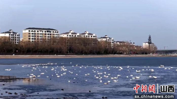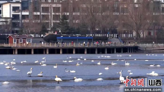 中新网山西新闻3月5日电 近日,山西朔州市恢河公园迎来罕见生态盛景——200余只国家二级保护动物天鹅飞临公园水域,为初春的朔州增添了一抹灵动诗意。这是恢河公园建成以来,首次迎来如此大规模的天鹅种群,其中以大天鹅居多,成为一道亮眼的生态风景线。
