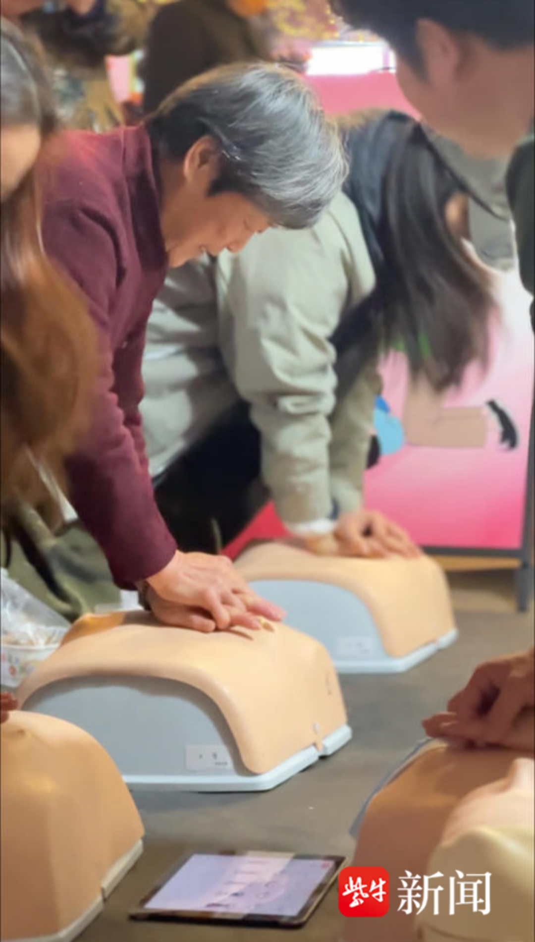 地摊急救课堂吸引路人驻足听课