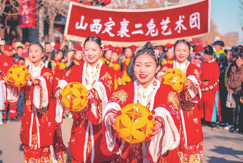 春节期间,忻州古城极具地域特色的民俗表演吸引游客驻足观看。本报记者王昕摄