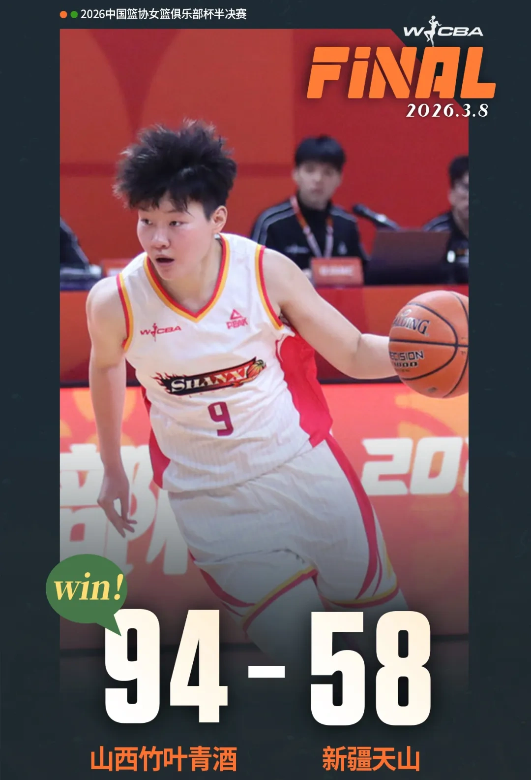 山西新闻网讯(记者 张晨阳)3月8日,第一届中国篮协女篮俱乐部杯半决赛战罢。山西女篮全场掌控节奏,以94比58大胜新疆队,强势挺进总决赛。