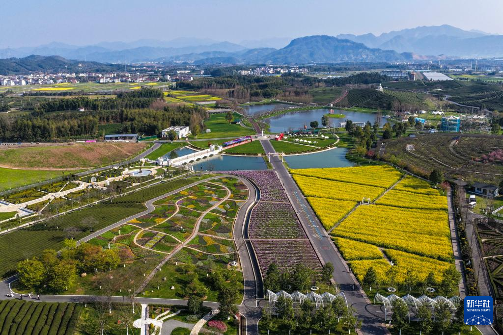 花田美地景区是浙江省金华市武义县王宅镇的特色乡村旅游项目。近日,景区花海进入盛花期,金黄色的油菜花与粉色樱花、多彩郁金香等共同构成春日美丽画卷,吸引游客前来打卡游玩。