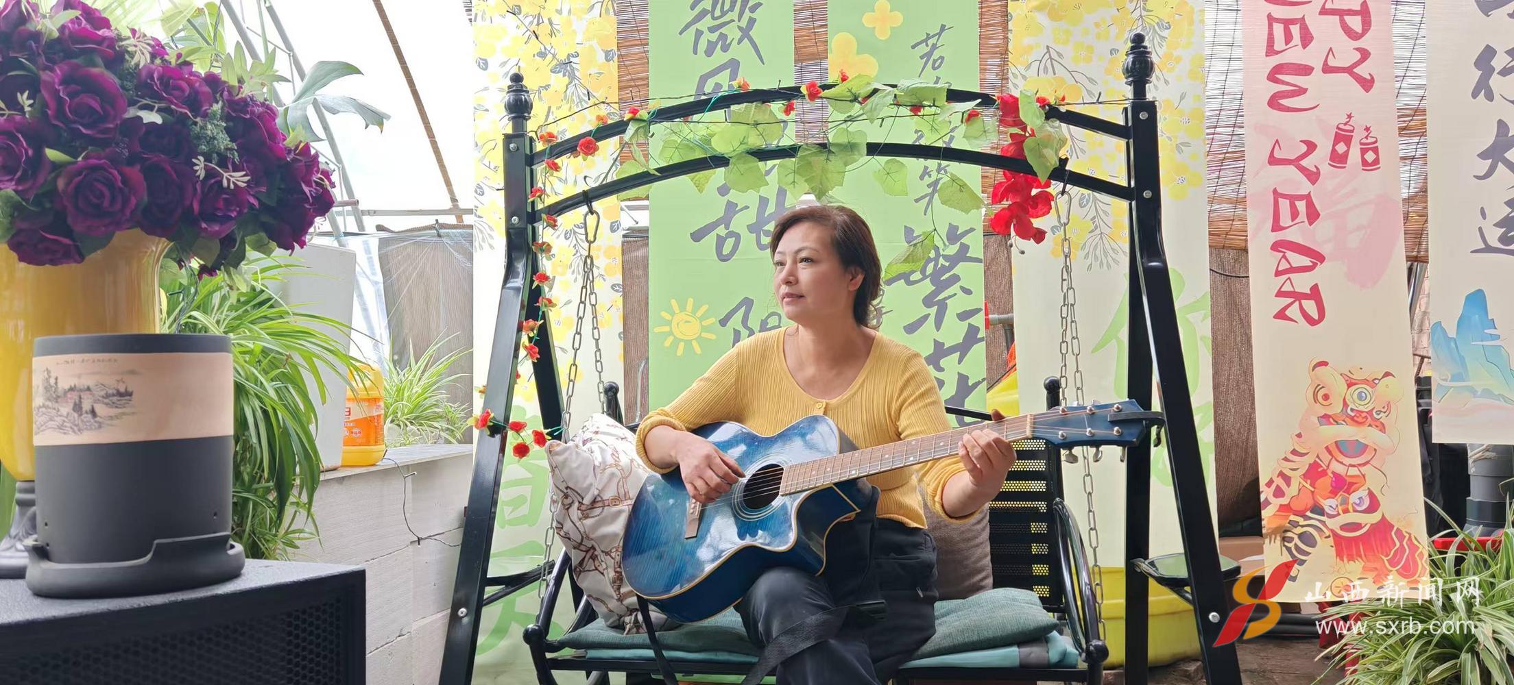 50岁的郭改花是村里的大棚户之一。别人种地是面朝黄土背朝天,她却把直播间搬进了大棚——手机一架,音乐一放,一边干活一边和网友聊天。“家人们看,这就是咱们的西红柿,沙瓤多汁,咬一口全是小时候的味道!”兴之所至,她还会抱起吉他在棚里弹唱一曲;累了,便泡壶茶歇一歇,和网友唠唠家常。