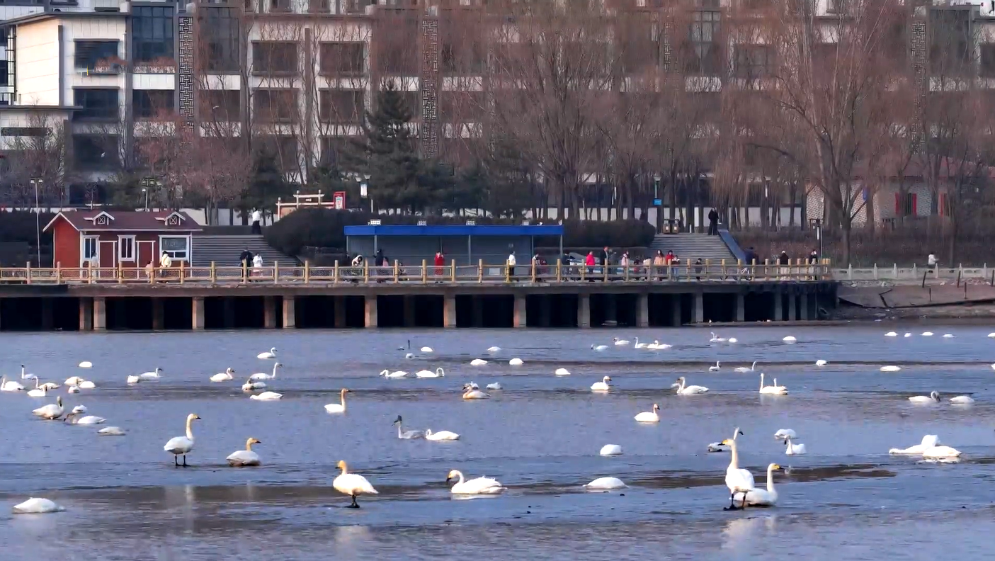 ▲朔州市恢河公园天鹅群
