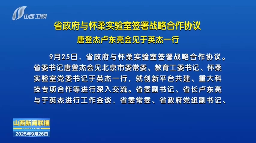 省政府与怀柔实验室签署战略合作协议 唐登杰卢东亮会见于英杰一行