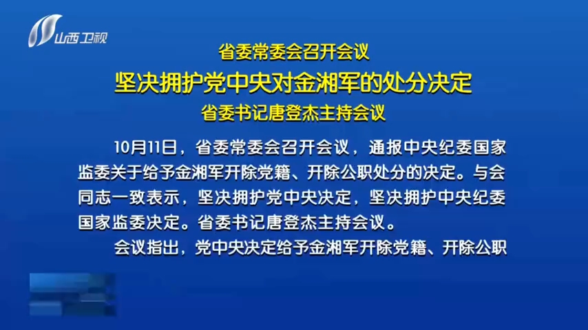 省委常委会召开会议 坚决拥护党中央对金湘军的处分决定省委书记唐登杰主持会议
