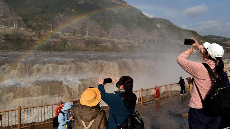 吉县黄河壶口瀑布景区惊现“彩虹桥”景观