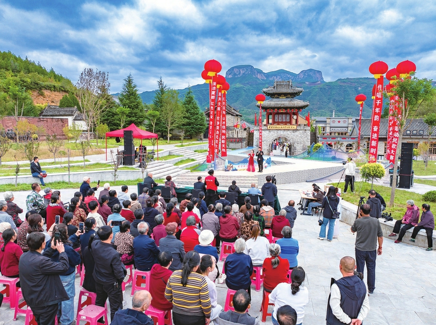 10月2日,左涉联动民歌大赛在左权县桐峪1941小镇举办,游客听得如痴如醉。张文军摄