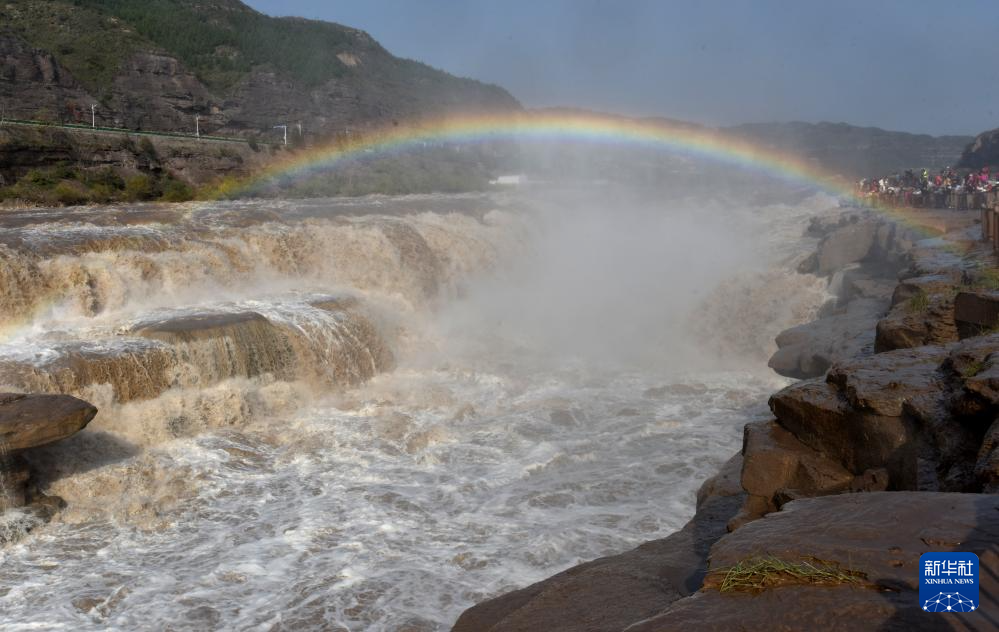 10月27日,位于山西吉县和陕西宜川县交界的黄河壶口瀑布景区天气晴好,飞溅的水雾在阳光照射下,形成一道壮美的“彩虹桥”。