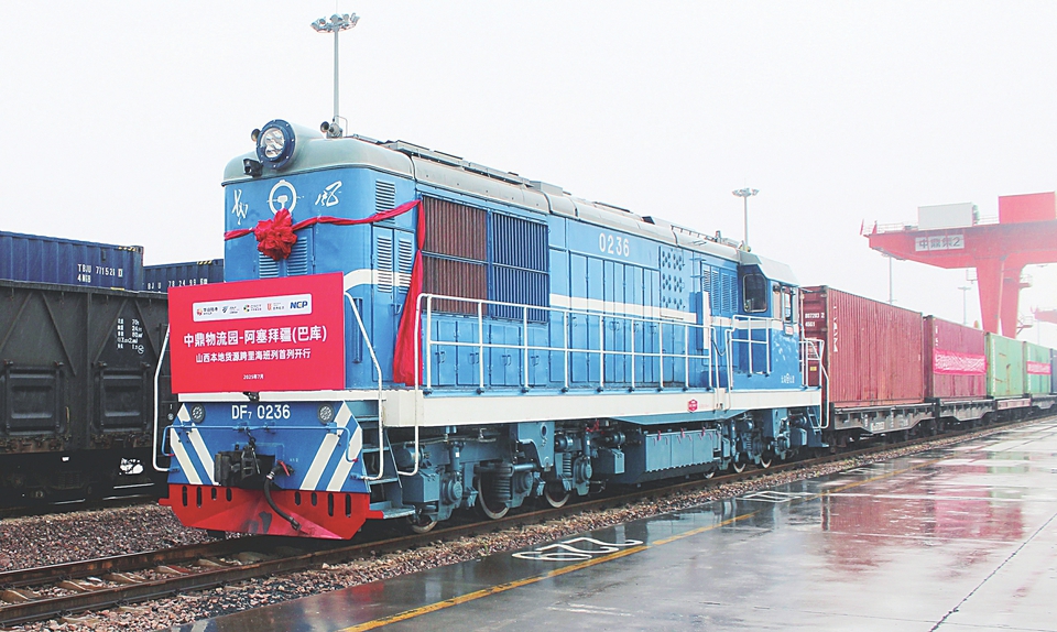 我省首列“跨里海”国际联运班列——开往阿塞拜疆的班列顺利开行。本报记者王蕾摄