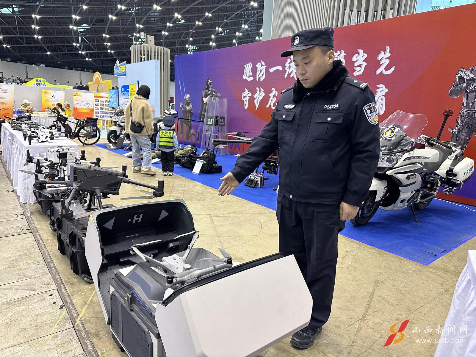 “这是我们警航大队的无人机,还有巡控大队用的警用摩托车、电助力自行车,以及安检排爆、反恐突击的相关装备。”太原市公安局巡特警支队警航大队二级警长米金红一边引导群众观看,一边热情细致地介绍着展区里的每一件装备。