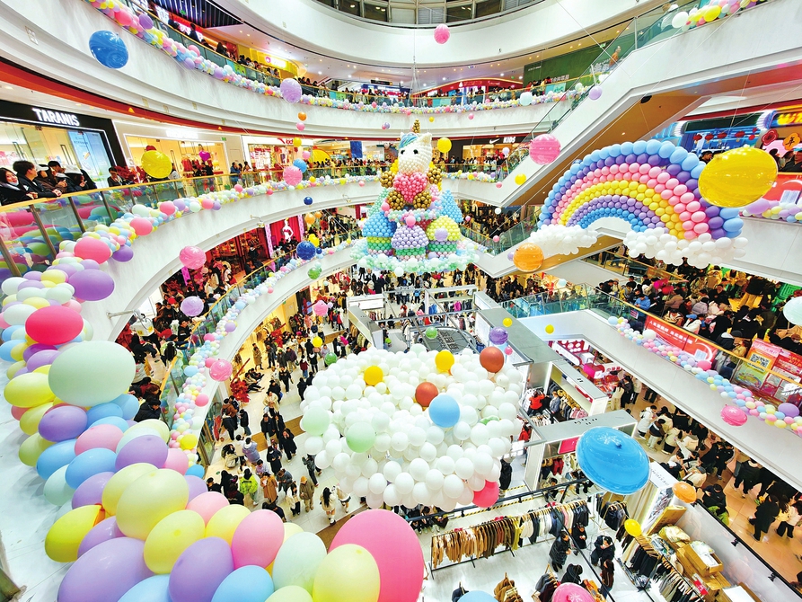 图④1月1日,市民在运城市万达广场休闲购物。元旦假期,该市各大商场节日氛围浓厚,为市民带来欢乐和便利。闫鑫摄