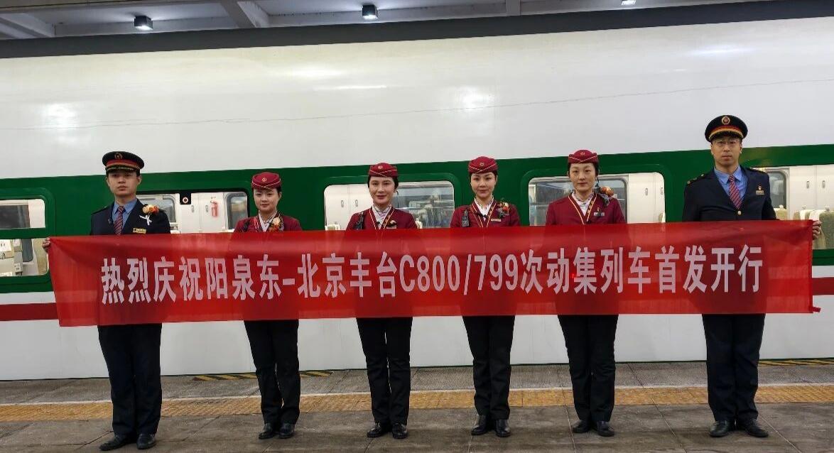 此次C800/799次列车的开行,依托阳大铁路,实现了与石太客专的无缝衔接。作为我国首条地方全资建设的以客运为主的铁路,阳大铁路成功破解了地方铁路接入国铁干线的技术难题,为动集动车开行奠定了坚实基础。