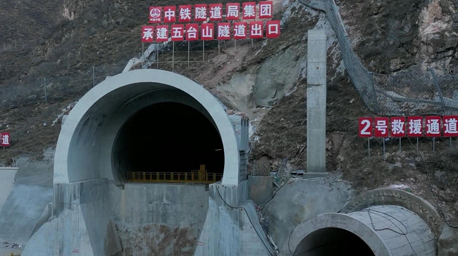 ▲雄忻高铁五台山隧道全隧贯通