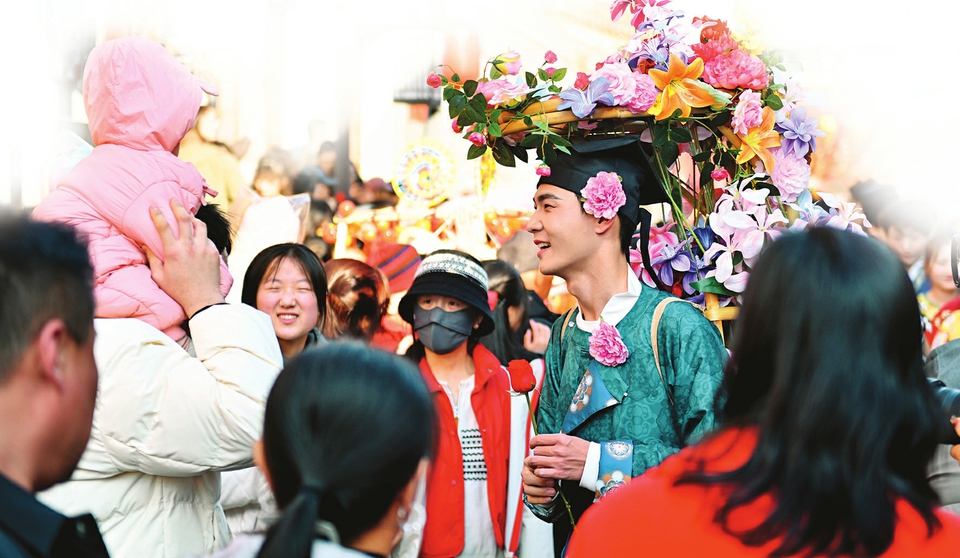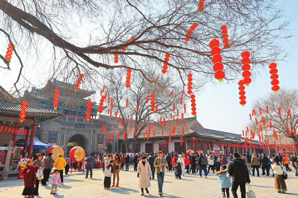 2月17日,游客在运城市李家大院景区参观游览。当日,该景区开展多种形式的传统年俗活动,吸引广大游客赏民俗、游大院,欢度新春佳节。闫鑫摄