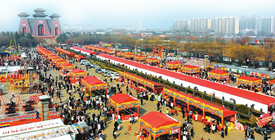 2月17日,在临汾市尧庙广场,第27届正月庙会活动现场游人如织。胡澍泽摄