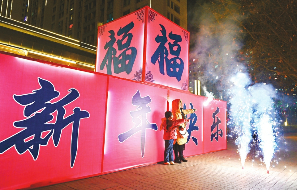 2月16日除夕,长治市上党区街头,市民欢庆新春到来,城市处处洋溢着喜庆的节日氛围。本报记者杨晨玉摄